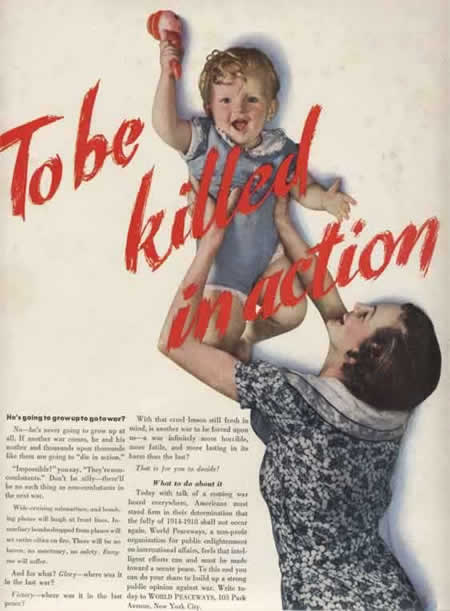 A cosa servono i bambini? Ma a fare le guerre ovviamente, quando saranno più grandi. La scritta “To Be Killed in Action” sopra il piccolo non lascia molta libertà di interpretazione